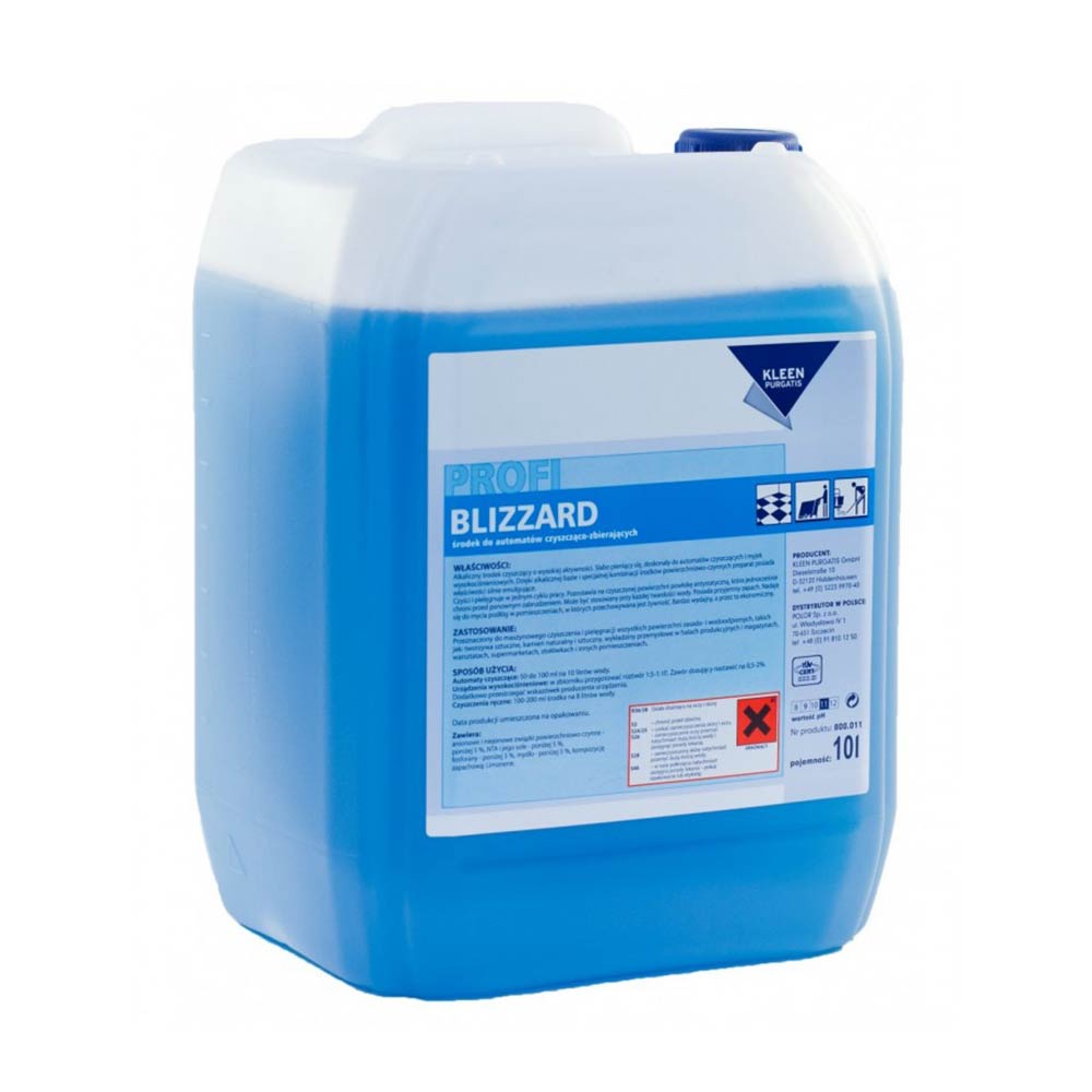 Blizzard marki KLEEN PURGATIS to środek o wysokiej aktywności do maszynowego czyszczenia i pielęgnacji powierzchni zasado i wodoodpornych w halach produkcyjnych i magazynach, warsztatach, supermarketach, stołówkach, pasażach handlowych itp. Pozostawia na czyszczonej powierzchni powłokę antystatyczną, która jednocześnie chroni przed ponownym zabrudzeniem.
