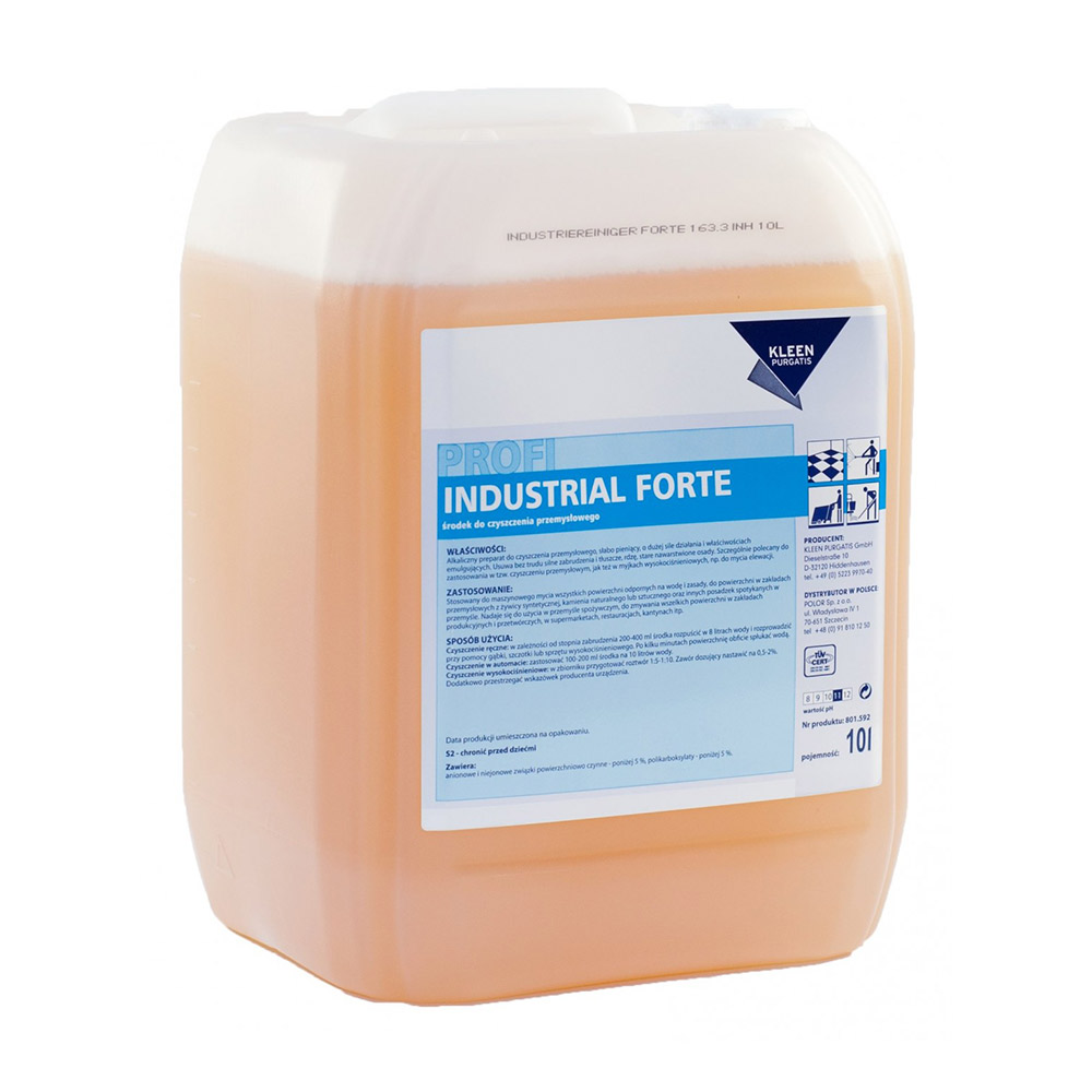 Industrial Forte to środek marki KLEEN Purgatis przeznaczony do bieżącego i okresowego czyszczenia posadzek przemysłowych, powierzchni, linii produkcyjnych itd.