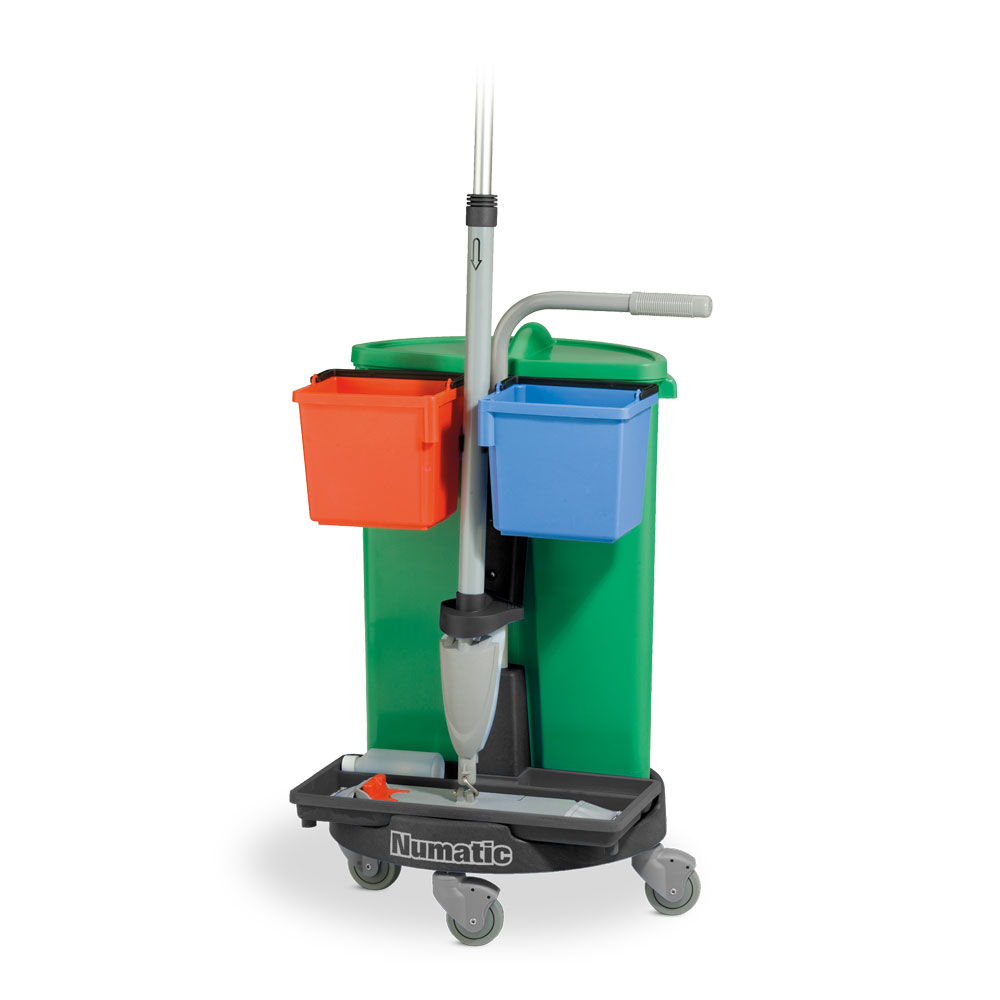 Mały wózek serwisowy NC0R Carousel angielskiej marki NUMATIC przeznaczony jest do profesjonalnego czyszczenia podłóg na małych powierzchniach np. w sklepach, szkołach, szpitalach czy biurach. Model NC0R Carousel doskonale sprawdza się w niewielkich pomieszczeniach o ograniczonej dostępności np. w wąskich korytarzach, czy między szafkami szkolnymi. Lekka konstrukcja i ergonomia zapewniają mobilne, efektywne i praktyczne zaplecze sprzątające.
