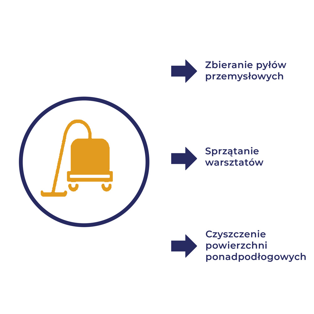 Wielostopniowy system filtracji Tritex® zapewnia efektywną i bezpieczną pracę, nawet w warunkach bardzo dużego zapylenia. Dodatkowym walorem funkcjonalnym jest system filtracji drobnych pyłów Cyclon, który wykorzystuje w pełni pojemność metalowego zbiornika (35 litrów). Boczny, cyklonowy wlot powietrza wspomaga separację wciąganych odpadów o różnej wielkości i zabezpiecza filtr przed zatkaniem. Odkurzacz dedykowany jest do pracy ciągłej i bezworkowej.