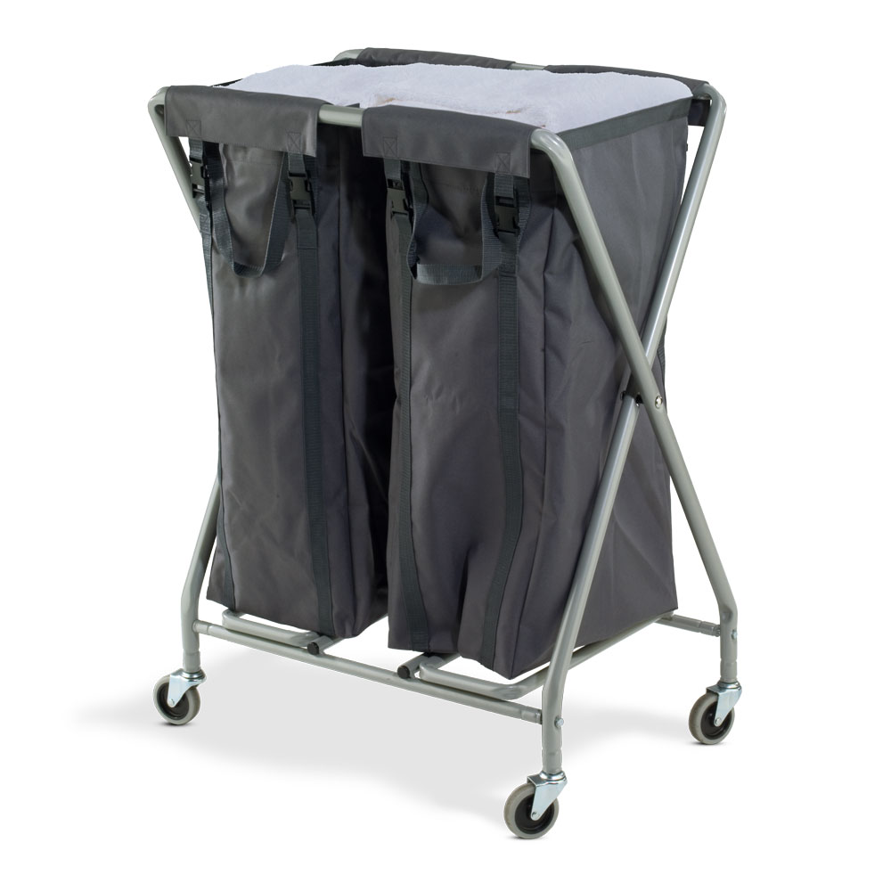 Składany wózek do obsługi hotelowej NX1002 angielskiej marki NUMATIC przeznaczony jest do transportu i przechowywania brudnej pościeli oraz zużytych ręczników. Skrętne koła zapewniają doskonałą pracę wózka również w niewielkich pomieszczeniach o ograniczonej dostępności np. w wąskich korytarzach czy na podjazdach lub rampach.