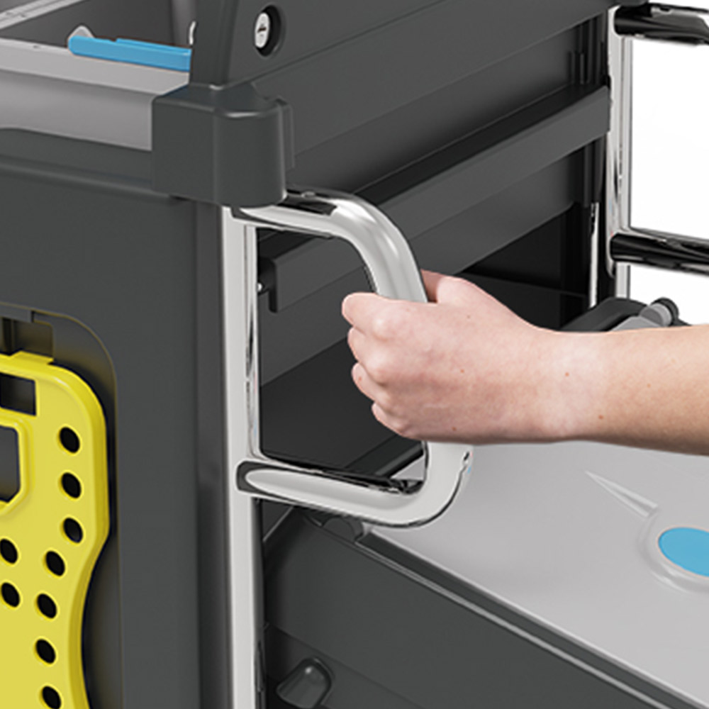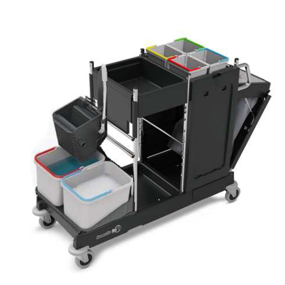 Wszechstronny wózek do sprzątania PM20S SRK1 SRK21 angielskiej marki NUMATIC przeznaczony jest do sprzątania np. obiektów sportowych, kompleksów biurowych, gastronomicznych czy galerii handlowych. Wyposażony jest w wyciskarkę doczołowąwysuwany stelaż na śmieci, a także 2 komplety wiader o różnej pojemności. Wózek doskonale sprawdza się również w niewielkich pomieszczeniach o ograniczonej dostępności np. w wąskich korytarzach.