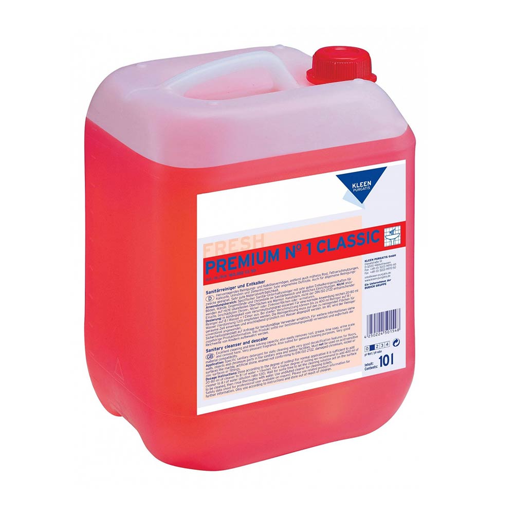 Premium Nr 1 Classic to znakomity środek odwapniający na bazie skutecznego kwasu amidosulfonowego stosowany do czyszczenia powierzchni kwasoodpornych tj.: podłóg, ścian, chromowanych części armatury łazienkowej, toalet, kabin prysznicowych, wanien i innego wyposażenia w obszarze sanitarnym. Nie nadaje się do mycia marmuru, kamienia sztucznego, emalii nieodpowiadającej normom wg klasyfikacji DIN ISO 2722, jak również uszkodzonych powierzchni chromowanych, niklowanych i ocynkowanych.