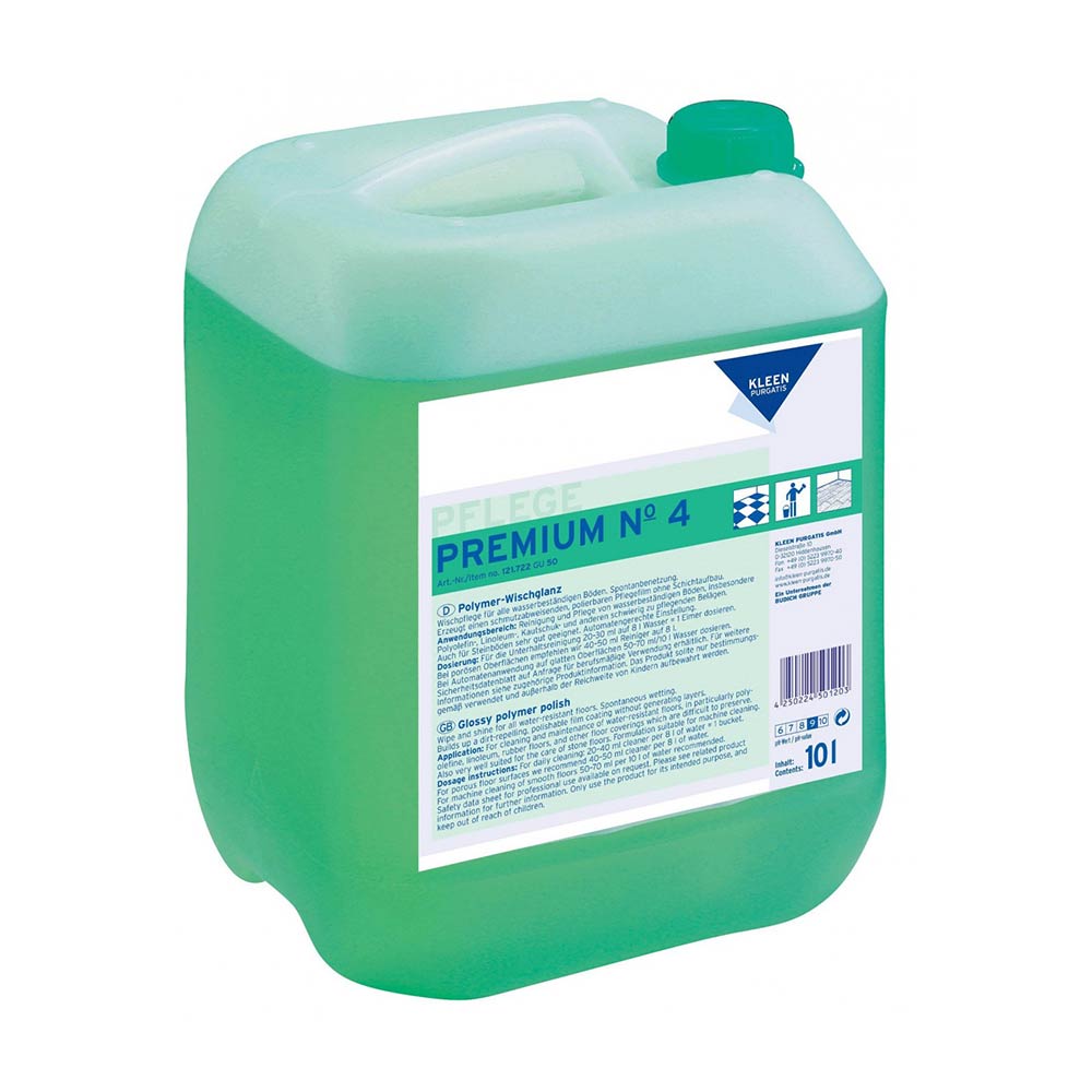 Premium Nr 4 przeznaczony jest do czyszczenia i pielęgnacji wszystkich twardych i elastycznych podłóg zmywalnych zabezpieczonych i niezabezpieczonych powłoką polimerową za wyjątkiem niezabezpieczonego lub olejowanego drewna lub parkietu. Świetnie czyści posadzki kamienne. Nadaje się do stosowania w automatach czyszcząco-zbierających.