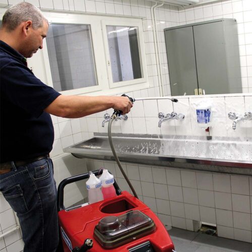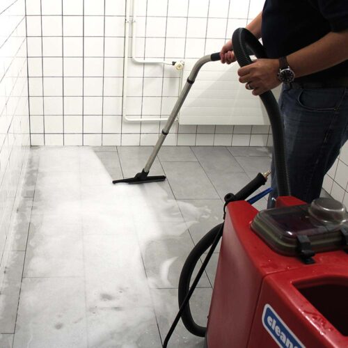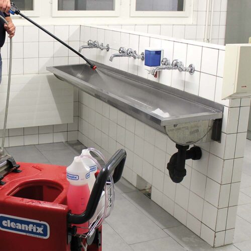 Wielofunkcyjne urządzenie SC1250 Foam marki Cleanfix do czyszczenia i dezynfekcji publicznych toalet. Działa poprzez spienianie, płukanie wszystkich powierzchni i odkurzanie. Może być również używane jako odkurzacz na mokro lub maszyna do czyszczenia dywanów.