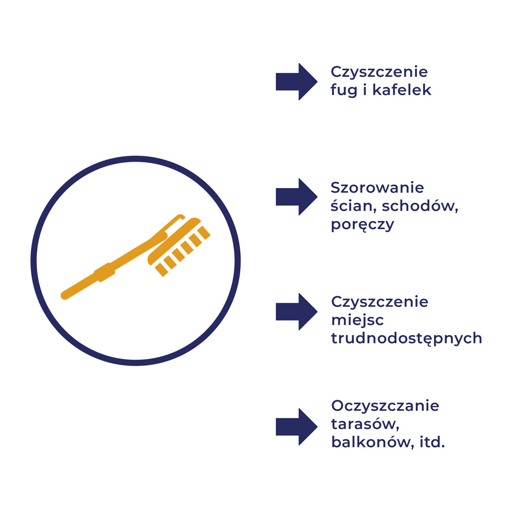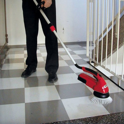 Poręczna szorowarka SCRUBBY waży jedynie 3kg a posługiwanie się nią jest bardzo proste. Urządzenie może pracować metodą bezpośrednią lub przy zastosowaniu kija teleskopowego. Jego zasięg można regulować od 100 do 137 cm. Maszyna w standardzie pracuje na szczotce o szerokości 18cm. Możliwe jest zamontowanie uchwytu pada o szerokości 15cm. Użyteczność szorowarki SCRUBBY najlepiej widać w sytuacjach, kiedy konwencjonalne metody czyszczenia są albo niepraktyczne, albo pracochłonne.