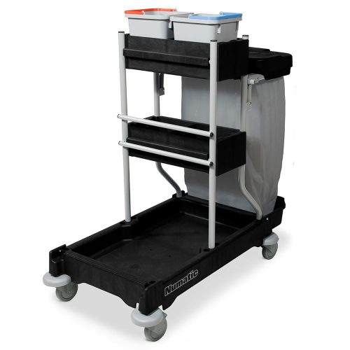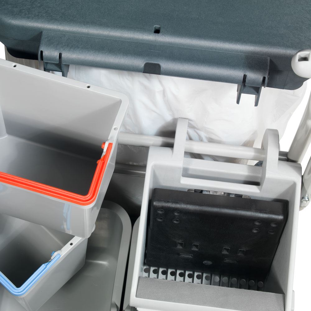 Uniwersalny, duży wózek serwisowy SM1415 SRK2 angielskiej marki NUMATIC przeznaczony jest do profesjonalnego czyszczenia podłóg na małych i średnich powierzchniach np. w sklepach, szkołach, szpitalach czy biurach. Model SM1415 SRK2 doskonale sprawdza się w pomieszczeniach o ograniczonej dostępności np. w wąskich korytarzach, czy między szafkami szkolnymi. Pomysłowa, lekka konstrukcja, ergonomia i funkcjonalne wyposażenie zapewniają mobilne, efektywne zaplecze sprzątające.