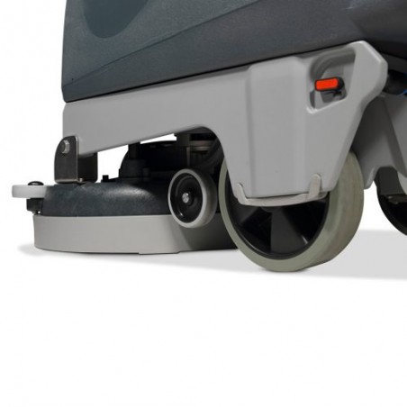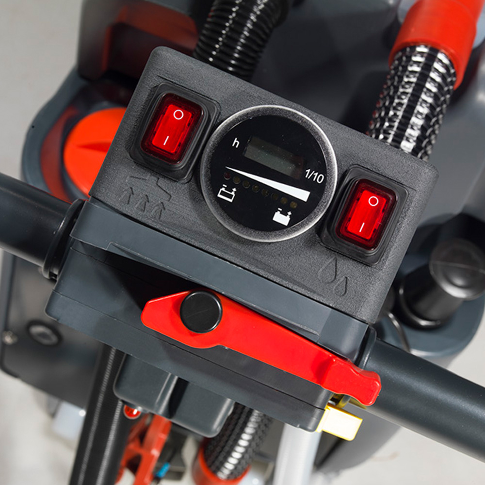 Przezroczysty separator umożliwia stałą kontrolę czystości powietrza wchodzącego do silnika ssącego. Grawitacyjne podawanie wody, eliminujące konieczność stosowania jakiejkolwiek pompy, zapewnia wysoką bezawaryjność urządzenia. Regulowana wysokość uchwytu sterującego zwiększa wygodę operowania w trakcie pracy oraz maksymalizuje możliwości manewrowe w ciasnych korytarzach oraz przy mijaniu wszelkich przeszkód.