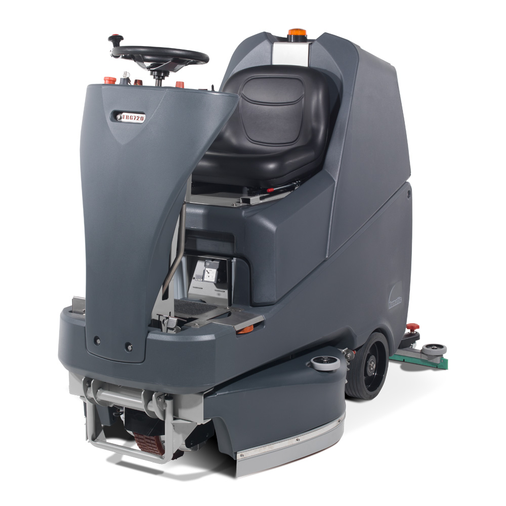 Wydajny, zasilany bateryjnie automat czyszcząco – zbierający z siedziskiem TRG720 angielskiej marki NUMATIC przeznaczony jest do profesjonalnego czyszczenia podłóg na dużych powierzchniach np. w marketach, magazynach, szpitalach czy halach przemysłowych. Maszyna wyposażona jest we własny napęd, który zapewnia łatwe czyszczenie również na nawierzchniach pochyłych, np. rampach czy podjazdach dla wózków inwalidzkich. Parametry techniczne, prosta konstrukcja i bogate wyposażenie standardowe czynią z tego modelu niezawodne urządzenie do intensywnych, przemysłowych zastosowań. Automat dedykowany jest do pracy na powierzchniach do 3200m2.